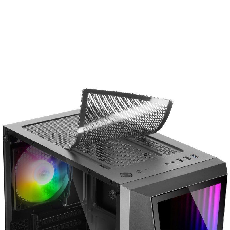 A frente possui um espelho multicamadas com iluminação ARGB que o irá hipnotizar com um efeito de profundidade infinita. Escolha facilmente entre 17 modos predefinidos em sincronia com as duas ventoinhas incluídas ou use o conector ARGB para controlar todo o sistema com um controlador ARGB ou placa-mãe. Escolha o modo que melhor se adapta à sua configuração e desfrute de uma gama infinita de possibilidades estéticas.