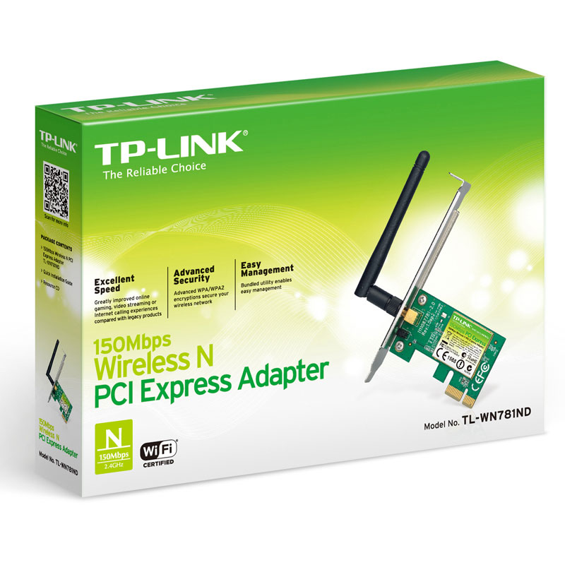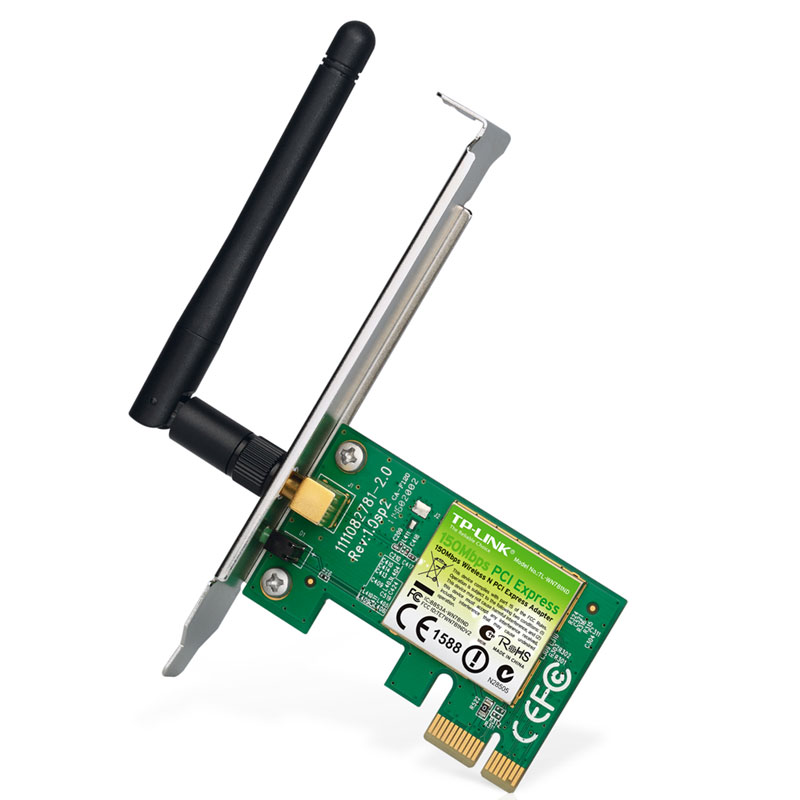 Placa PCI EXPRESS Wireless TP-LINK WN781ND N150 1T X 1R. Compatível com normas 802.11b/g (11/54Mbps). Suporta encriptação WEP, WPA, WPA2 (TKIP/AES)